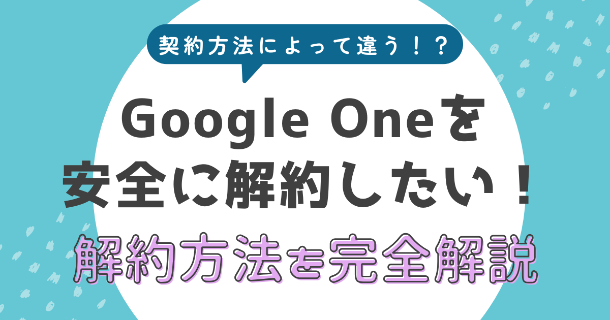 実は、Google Oneは契約した方法によって解約手順が変わるため、間違えると解約できないこともあります。